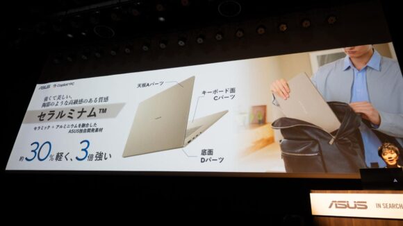 ASUS独自素材「Ceraluminum™(セラルミナム)」が軽量化のポイント