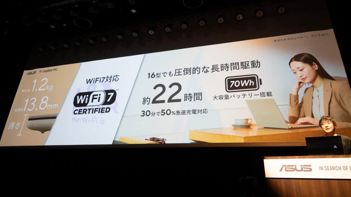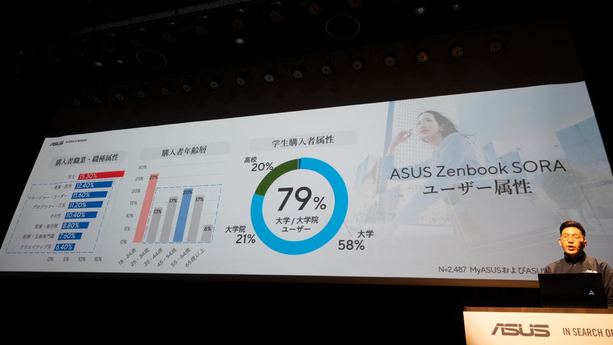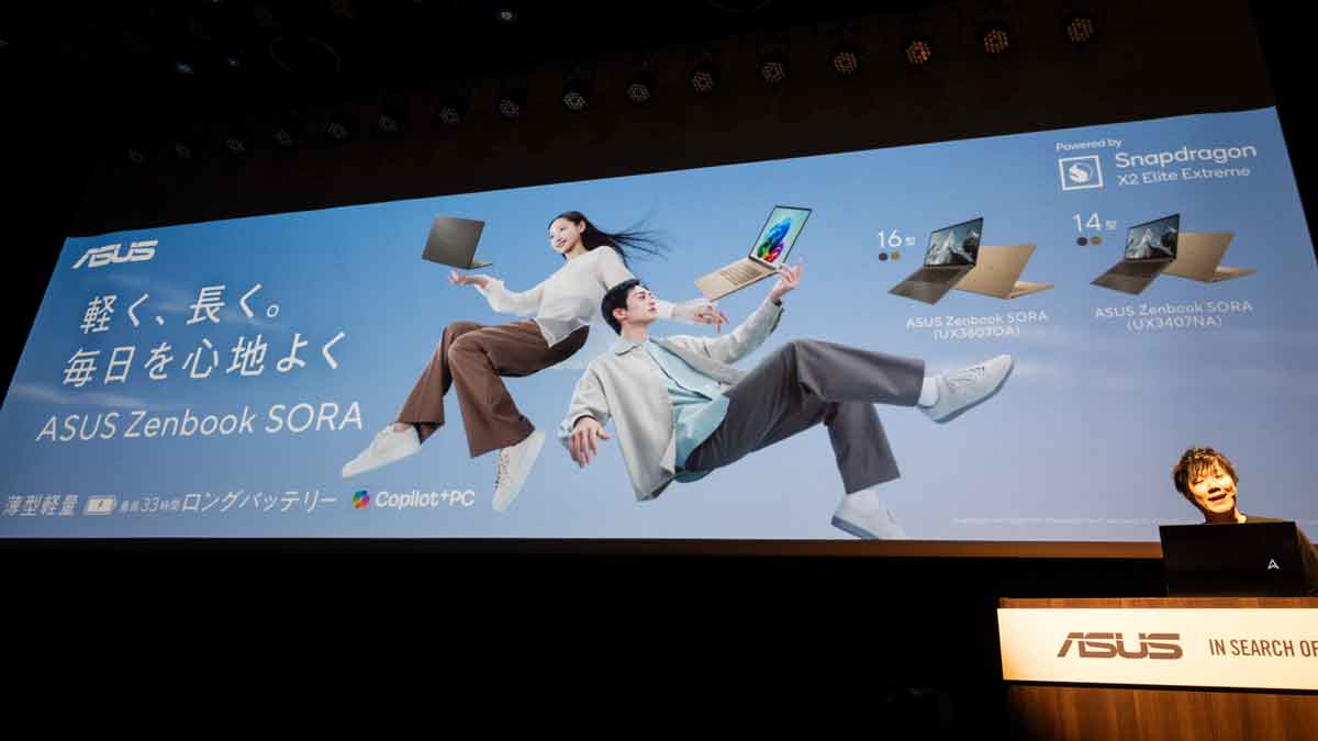 今回の発表会では、その実績を基盤として、日本のユーザーのために開発された超軽量モバイルノートPC「ASUS Zenbook SORA」シリーズの最新モデルが披露されました。