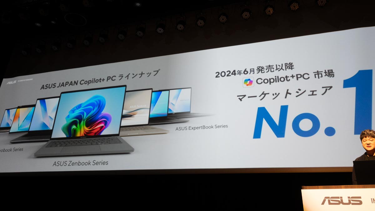 ASUSは2024年6月の発売以降、国内のCopilot+ PC市場においてトップシェアを維持